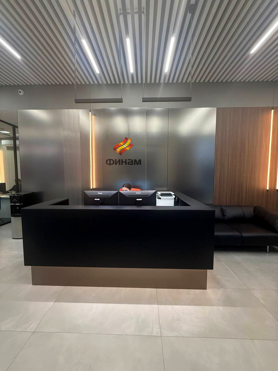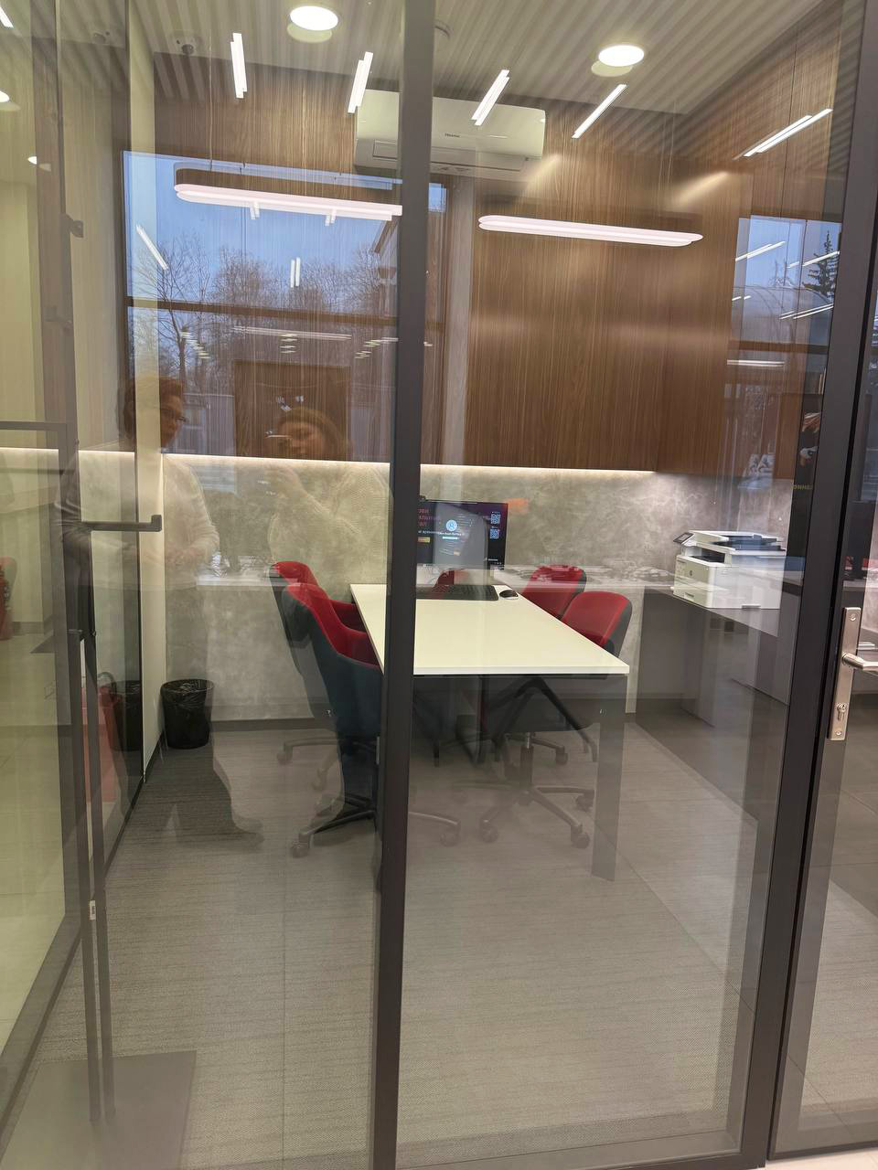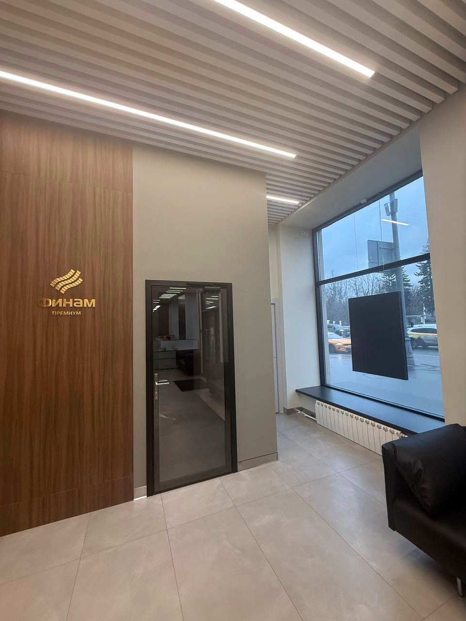 Современный офис банка с акцентом на комфорт клиентов, функциональность зон обслуживания и строгий деловой стиль.