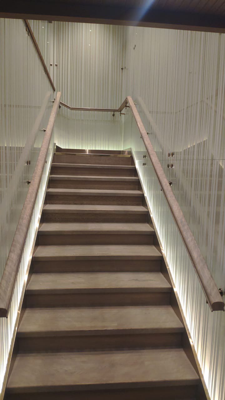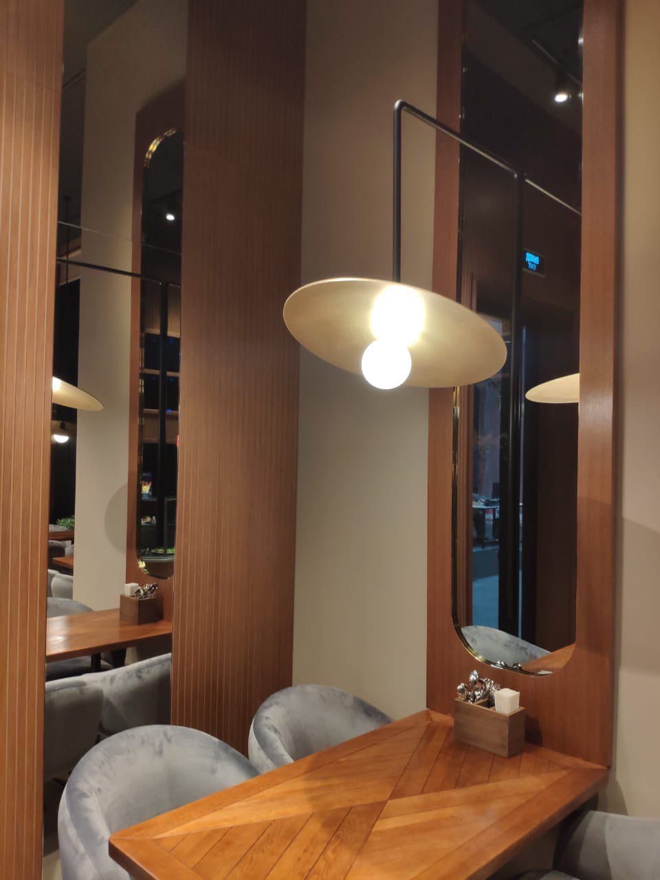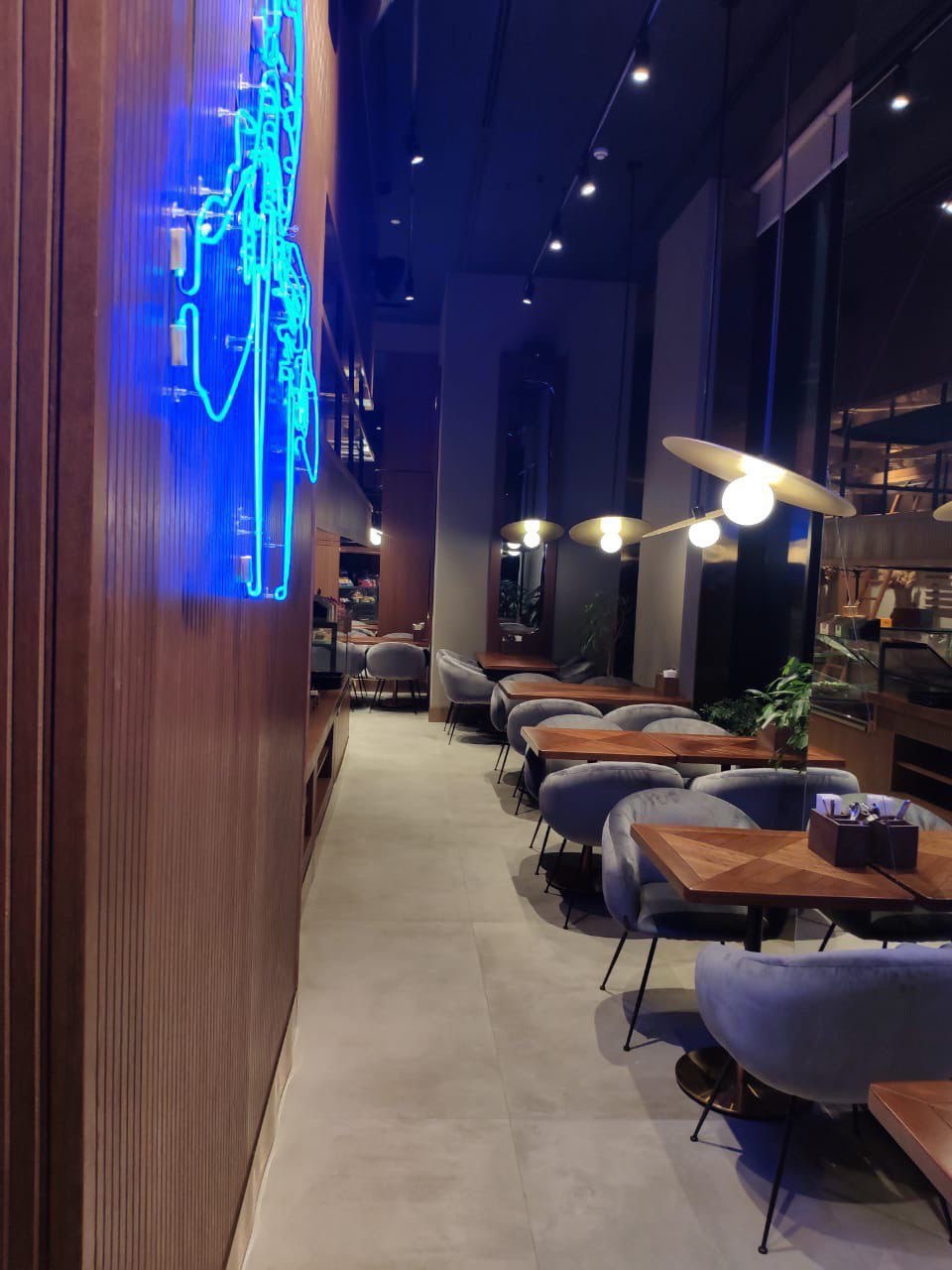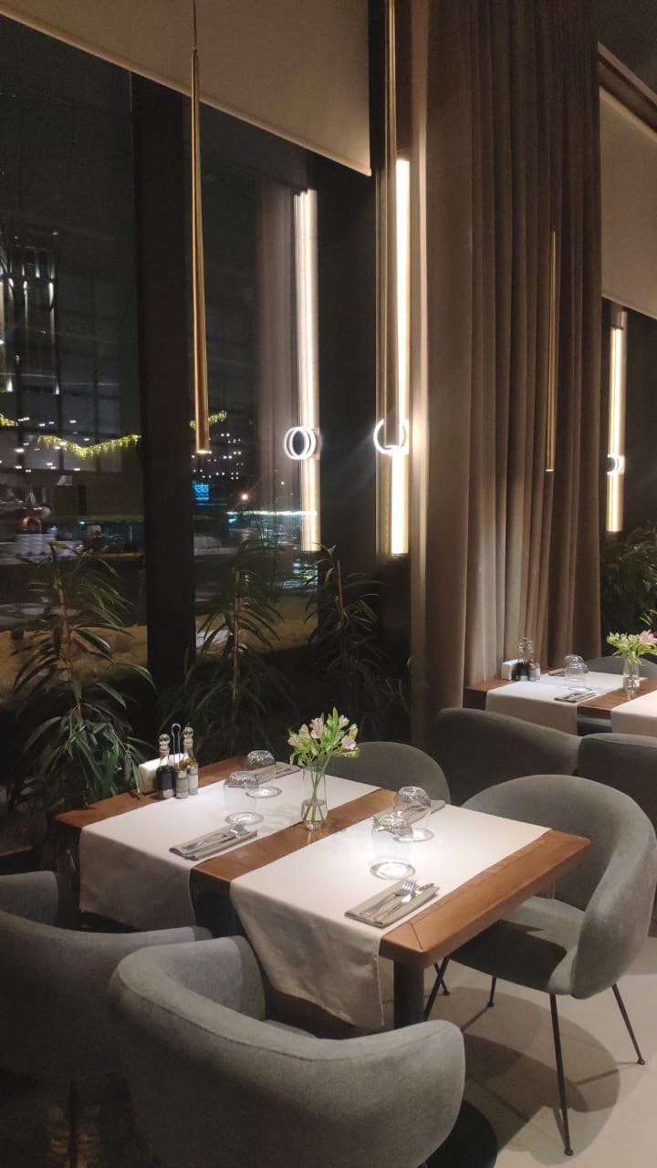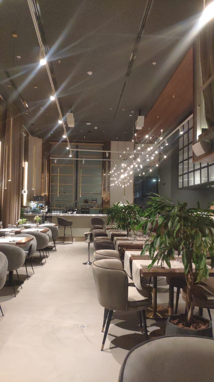 Атмосферный интерьер с акцентом на световые сценарии, посадку и уютную зону отдыха. Продумали маршруты гостей и зонирование.